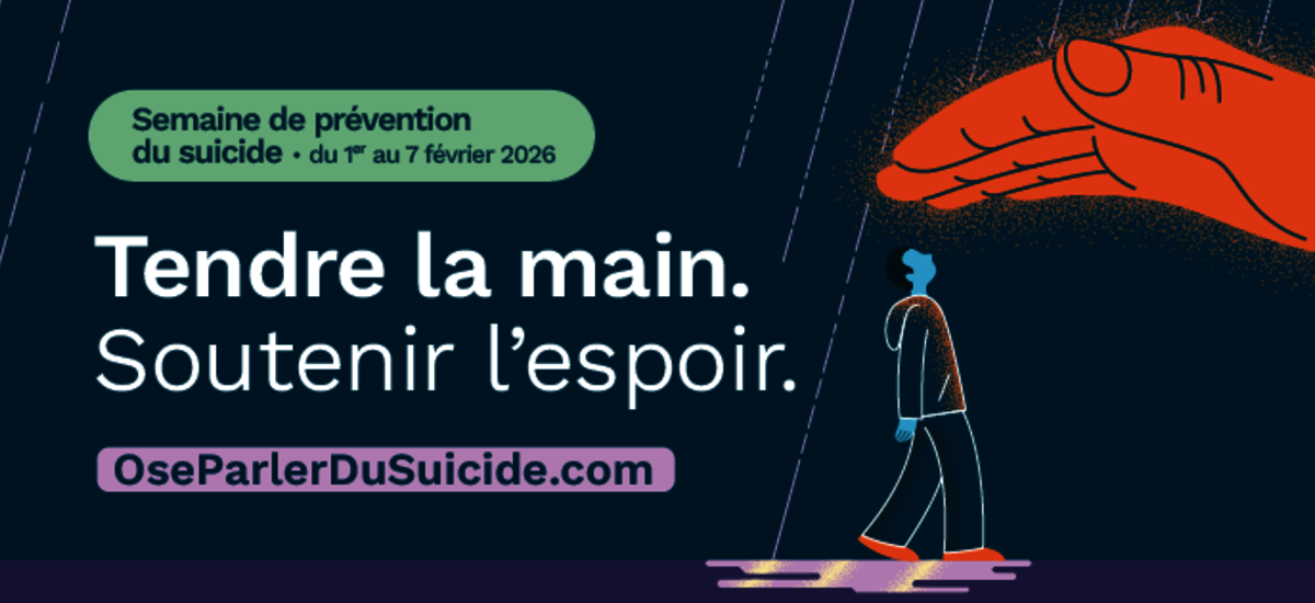 Du 1er au 7 février 2026, à l'occasion de la Semaine de prévention du suicide, soulignons l’importance d’offrir refuge et bienveillance à celles et ceux qui vivent un moment difficile.